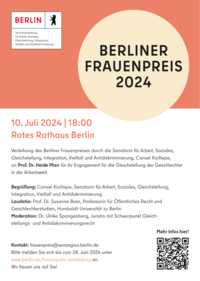 Der Berliner Frauenpreis ging 2023 an Amal Abbass, die sich seit Jahren für die Gleichstellung von Frauen einsetzt, die aufgrund ihrer Hautfarbe, ihrer sexuellen oder geschlechtlichen Identität benachteiligt werden. (PM v. Sen WGPG v. 16.01.23)