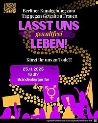 Im vergangenen Jahr sind wir gemeinsam auf die Straße gegangen – voller Wut und Trauer über die vielen Frauen, die in Berlin durch Männergewalt ihr Leben verloren haben. Unsere Forderung war klar: Schutz und Hilfe für Betroffene müssen ausgebaut werden! Doch die Antwort des Berliner Senats ist das Gegenteil. Zu 2026 werden im Bereich Gewaltschutz und Gleichstellung Gelder gestrichen – statt erhöht. Diese Kürzungen bedeuten: noch weniger Schutz und noch weniger Hilfe für gewaltbetroffene Frauen und ihre Kinder. Darum müssen wir jetzt noch lauter werden!